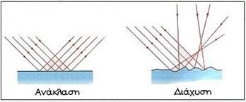 Όταν όμως το φως πέφτει σε μια τραχιά και ανώμαλη επιφάνεια, οι ακτίνες του δεν ανακλώνται όλες προς την ίδια κατεύθυνση, αλλά σκορπίζονται προς πολλές διαφορετικές κατευθύνσεις. Αυτό το φαινόμενο ονομάζεται διάχυση του φωτός.
