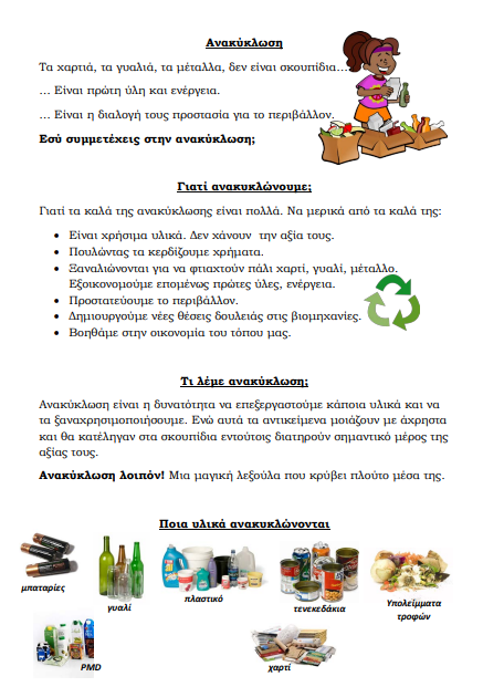 Μάθημα : «Η Ανακύκλωση στη Ζωή μας»